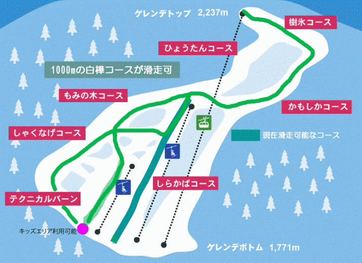 最新ゲレンデマップピラタス蓼科スノーリゾートは、蓼科温泉から車で20分!